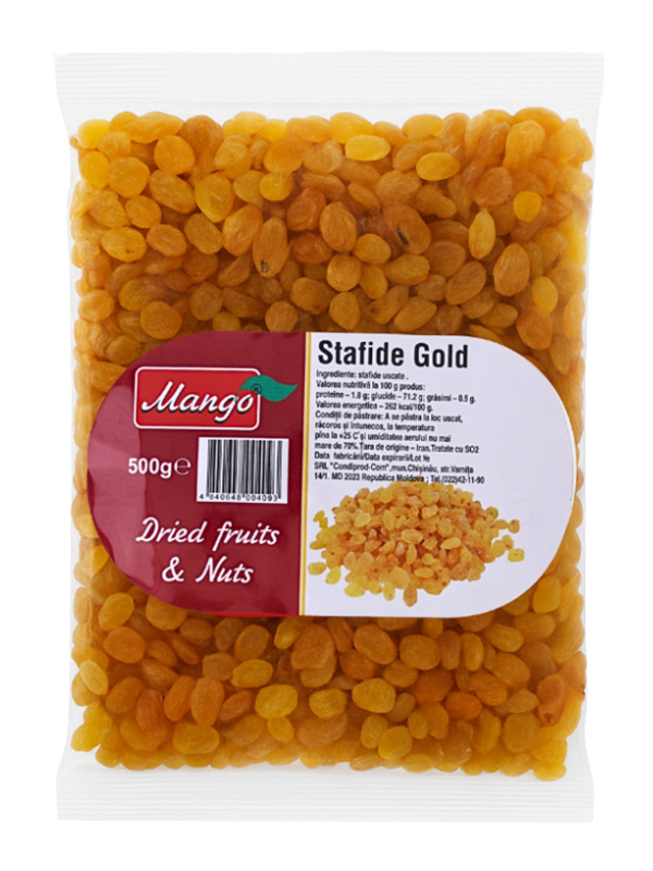 Stafidele Gold sunt fructe uscate dulci și aromate, obținute din struguri aurii atent selecționați și deshidratați natural pentru a păstra gustul intens, textura fragedă și substanțele nutritive. Produs 100% natural, fără adaos de zahăr, fără conservanți și fără OGM, perfect pentru o gustare sănătoasă și energizantă.